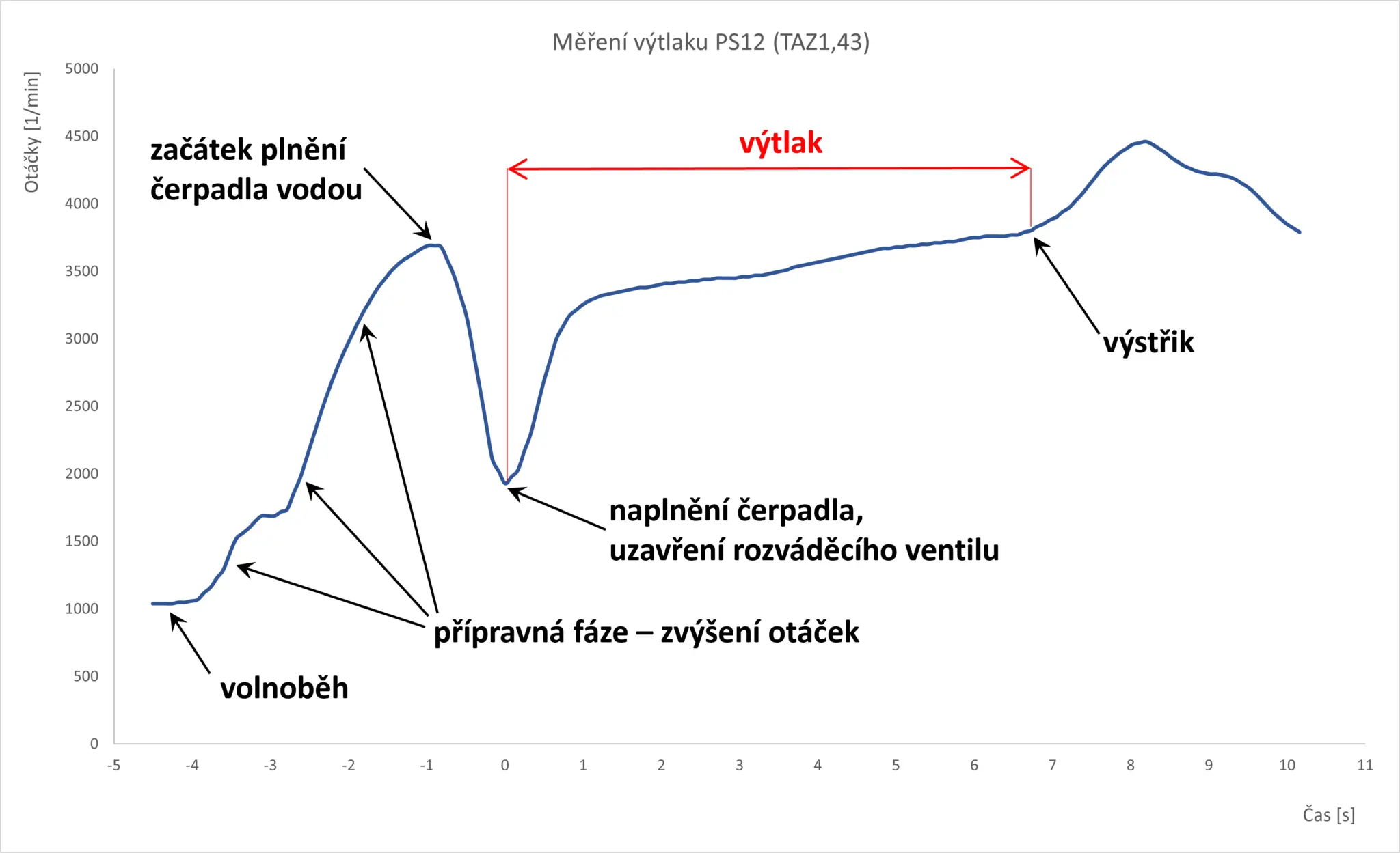Мы провели измерение подачи воды пожарного агрегата с двигателем TAZ 1,43, модифицированным в октябре 2019 года в TOMMÜ Studénka. Двигатель достигает макс. крутящего момента 131 Нм при 3250 об/мин и мощности 56 кВт при 4250 об/мин и оптимизирован на моторном стенде с чугунными коллекторами и резонансным глушителем TOMMÜ. Подача измерялась на рукавах 2x B65, 4x C42. Было проведено несколько повторных измерений, как с чугунными коллекторами и резонансным глушителем TOMMÜ, так и с новыми настроенными коллекторами, разработанными в нашей фирме. При измерении фиксировался график оборотов двигателя.